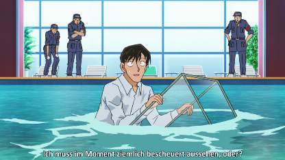 Ihr dachtet Conan wäre noch eucht hinter den Ohren? Nein, es ist Takagi. Heute macht er mal nicht Satou nass, sondern sich selbst. OK, ich sollte bei Seras Brust bleiben. Das Rätsel wird gelöst und Sera und Conan überführen den Täter. Wir konnte er die Leiche im Pool erscheinen lassen? Und wozu hat er das Aquarium benutzt? Außerdem sind wir fast auf Mangastand, von der Rum-„Arc“ mal abgesehen, auf die wir aber noch warten müssen. Mit anderen Worten, die nächsten Monate Filler und Widerholungen. Im Moment sieht es mit Conan also noch flacher aus als mit Seras Brust. Guehehehe.