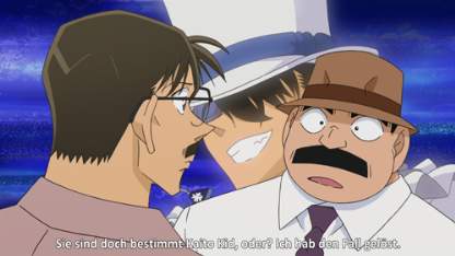 Wir sind immer noch live. Eine gewisse Person muss sich als Yuusaku ausgeben und den Fall lösen, während Conan unter dem Tisch hockt. Und alle gucken zu. Kogoro, Ran, Gin, Wodka… wait, die auch? Dann muss die Sendung wirklich gut sein. Sonoko nicht, den die schaltet beim Konkurrenz-Programm ein, wo Kid mal wieder einen Raubzug abzieht. Aber das kümmert Conan ja nicht, da er und Kaito den Fall… Moment! Wie kann Kid an zwei Orten gleichzeitig sein? Dabei muss es sich natürlich um einen Fehler handeln, der gute Aoyama hat schon zu viele Charaktere und kennt sich nicht mehr aus. So muss es sein.