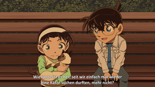 Wie lange ist es schon her, seit wir einfach mal einen Detective Boys Fall hatten, wo sie einfach nur eine Katze suchen? Ich weiß, viel zu lange. Aber endlich gibt es mal wieder so einen Fall. Ok, die Katze ist vielleicht Zeuge eines Mordes. Die DB könnten sie suchen, damit sie rechtzeitig im Zeugenstand aussagen kann. Ihr könnt mir nicht sagen, dass das nicht ein besserer Plot wäre als bei einem Organisationsfall.