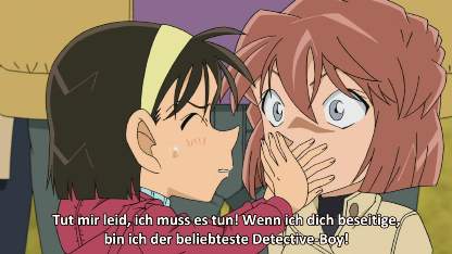 Ihr konntet letzte Folge nicht genug von Detective-Boys bekommen? Dem kann ich Abhilfe verschaffen! Heute gehen die DB Drachensteigen. Naja, das ist immer noch inovativer als schon wieder campen. Die Kinder nehmen an einem Wettbewerb teil, der am Teimuzu-Fluss stattfindet. Dort lernen sie auch einen Mann kennen der ihnen Tipps gibt. Als Belohnung wird er ermordet! Oder er fällt zumindest in den Fluss. Ein bedauerlicher Unfall. Aber Moment, Unfall? Niemals! Wie Conan sofort denkt. Logisch, er will lieber einen Fall lösen, als mit den DB rumzuspielen. Das Opfer telefonierte zu dem Zeitpunkt mit seiner Frau, doch diese kommt nicht als Täter in Frage, weil sie zu Hause war und somit ein Alibi hat. Es war ihr unmöglich ihren Mann zu der Stelle zu lotsen, ohne die Umgebung zu sehen. Denkt Meisterdetektiv Takagi zumindest. Wie gelang es dem Tater also die Absperrung zu manipulieren und das Ganze als Unfall zu tarnen?