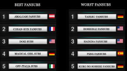 Kaum überraschend, doch vor wenigen Tagen hat die Fansub-Community auf der ganzen Welt abgestimmt um die besten als auch die schlechtesten Fansub-Gruppen zu wählen. Voller Stolz kann ich nun sagen, dass es Amalgam auf Platz 1 geschafft hat. Die Qualität und die Profesionalität unserer Untertitel hat sich nach all den Jahren bezahlt gemacht. Vielen Dank… Weiterlesen